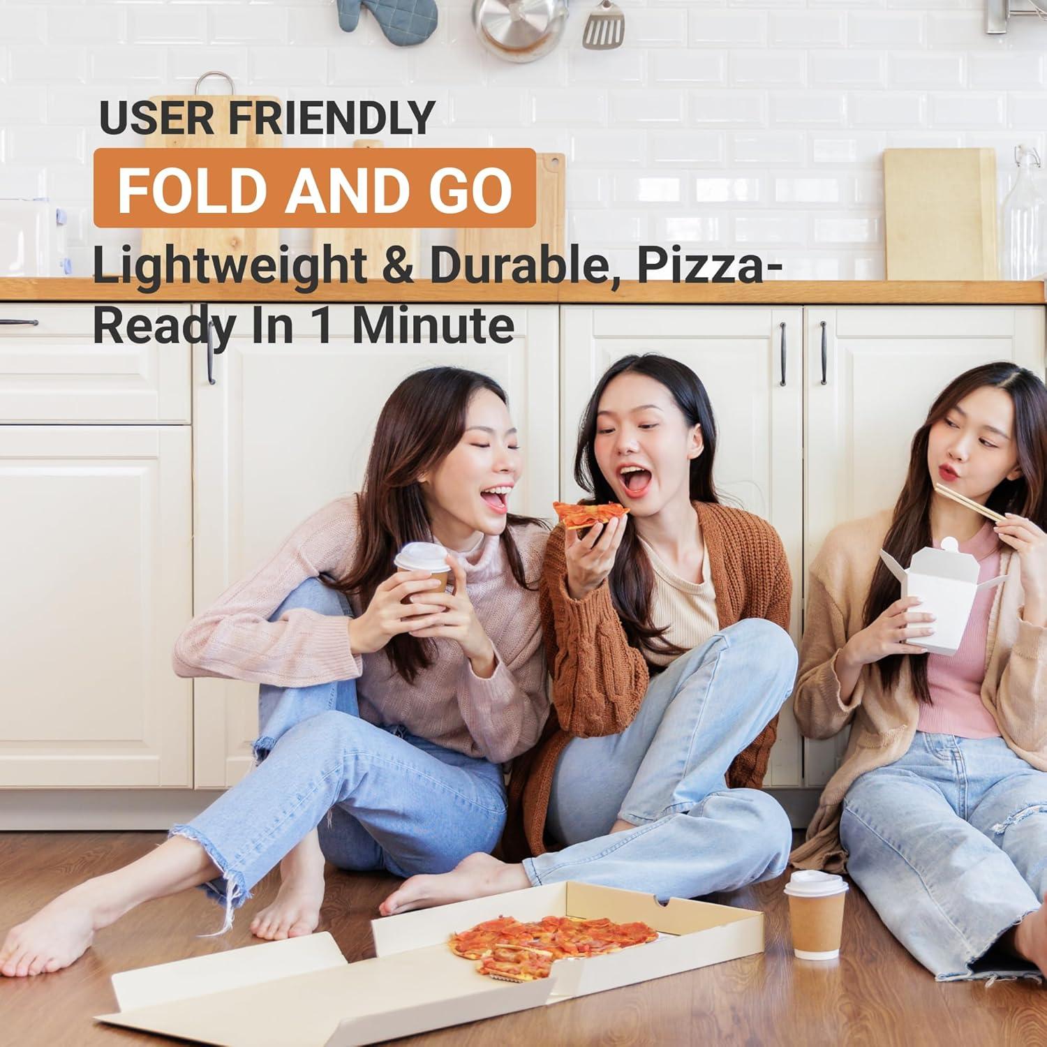 Easy to Use – Aviditi pizza boxes are made of corrugated cardboard that has been pre-folded for simple assembly, no tape or glue required. Just fold along the creases and your box will be pizza-ready in five minutes