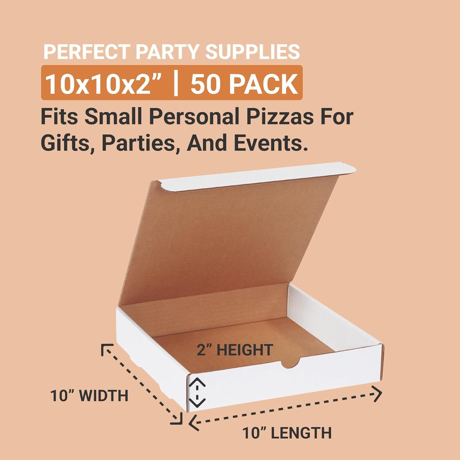 Aviditi Medium Pizza Boxes 12 Inch – 12″ L x 12″ W x 2″ H, White (50-Pack) Extra Strong Quick Assembly Cardboard Boxes for Pizza, Pizza Party Supplies, Heavy Duty Food Storage Takeout Container(10 inch)