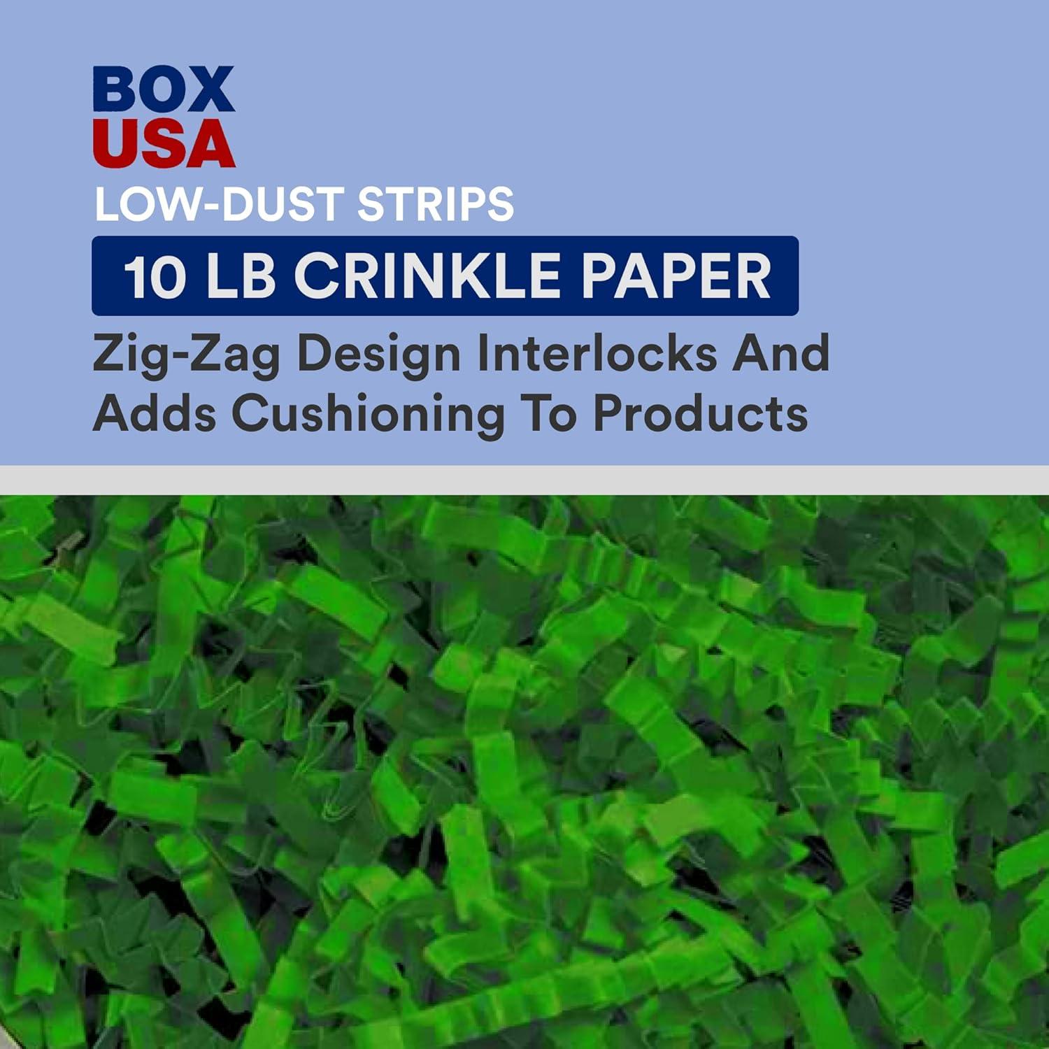 BOX USA 10 lb. Kraft Crinkle Paper Packing, Shipping, and Moving Box Filler Shredded Paper for Box Package, Basket Stuffing, Bag, Gift Wrapping, Holidays, Crafts, and Decoration(Green)