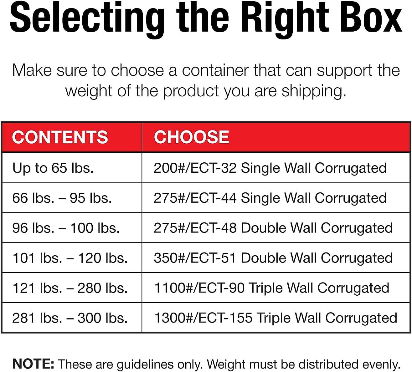 Heavy Duty Shipping Boxes – Holds up to 65 lbs (pounds), 32 lb (pound) edge crush tested, certified and tested to meet all single wall box storage, mailing, and freight requirements