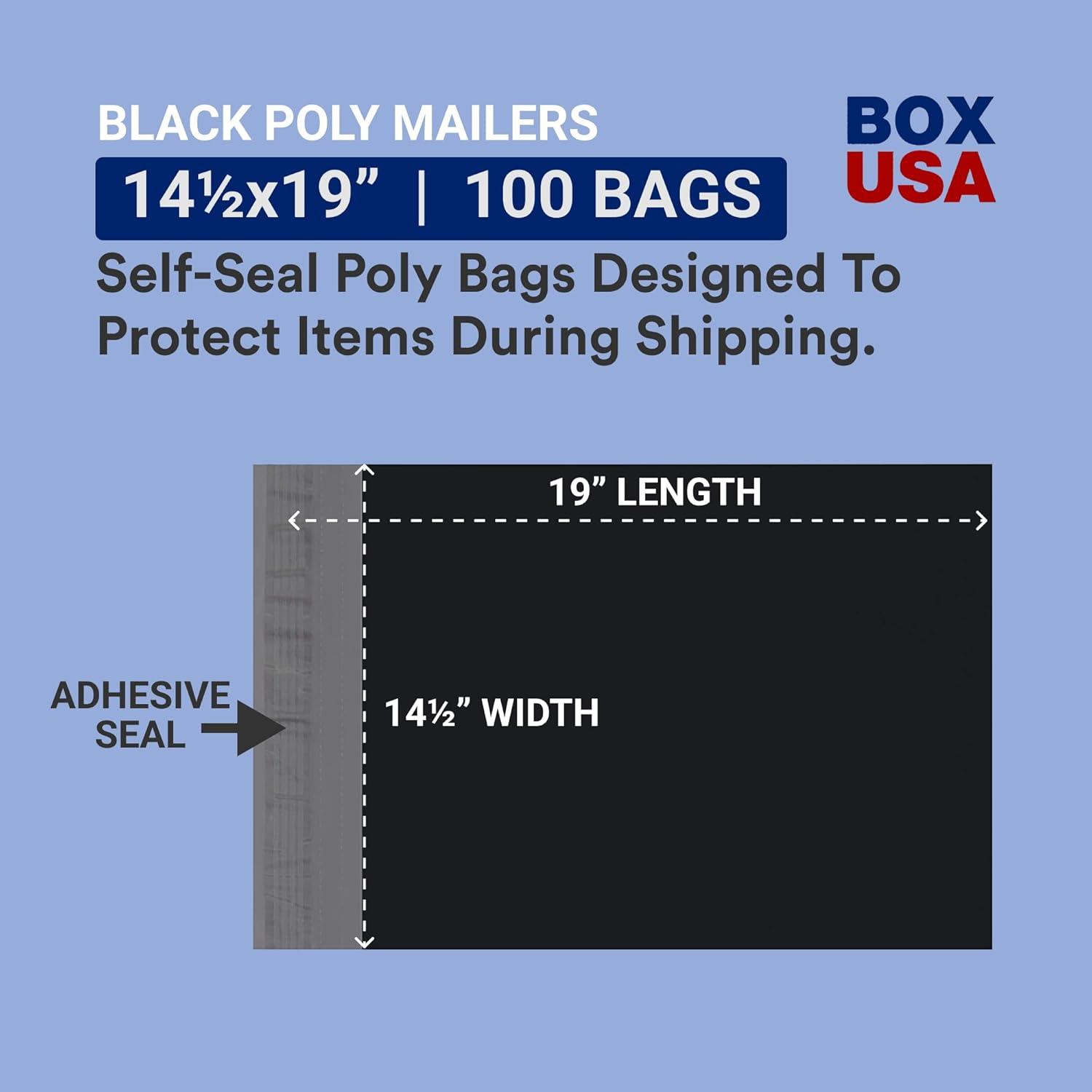 BOX USA Black Shipping Bags Large Heavy Duty 14½" x 19" (100-Pack) | Waterproof Bag Poly Mailers for Packing Clothing and Secure Shipping, Packaging & Small Business Mailing(Black)