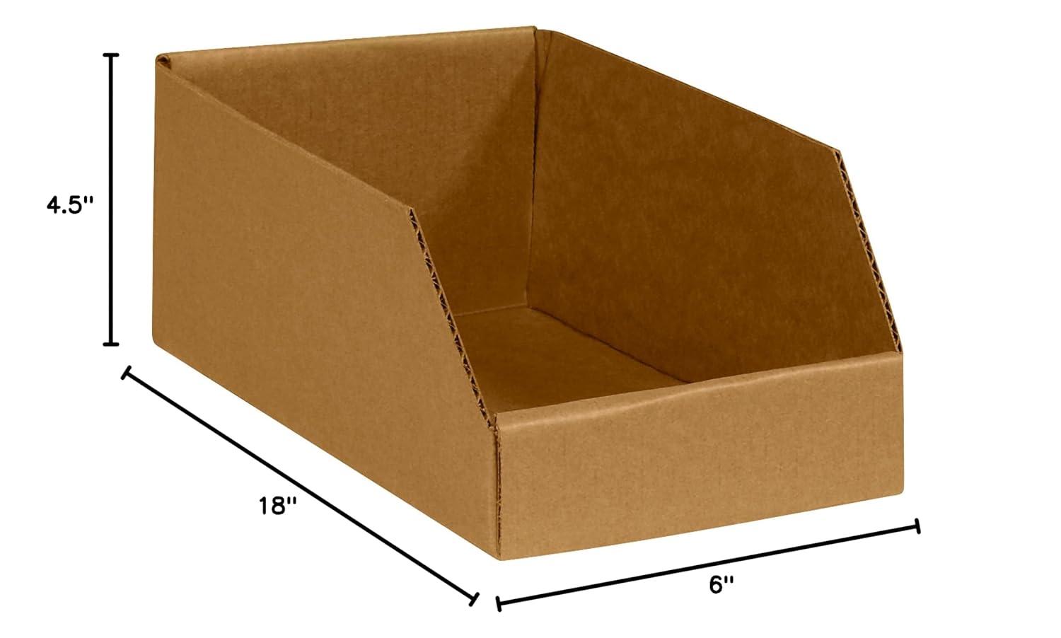 BOX USA Cardboard Storage Bins, Open Top Bin Box, 4"L x 12"W x 4.5"H 50-Pack | Medium for Inventory, Organization, Parts, Garage, Warehouse or Home Cubby, Oyster White 8x18x10(Kraft)