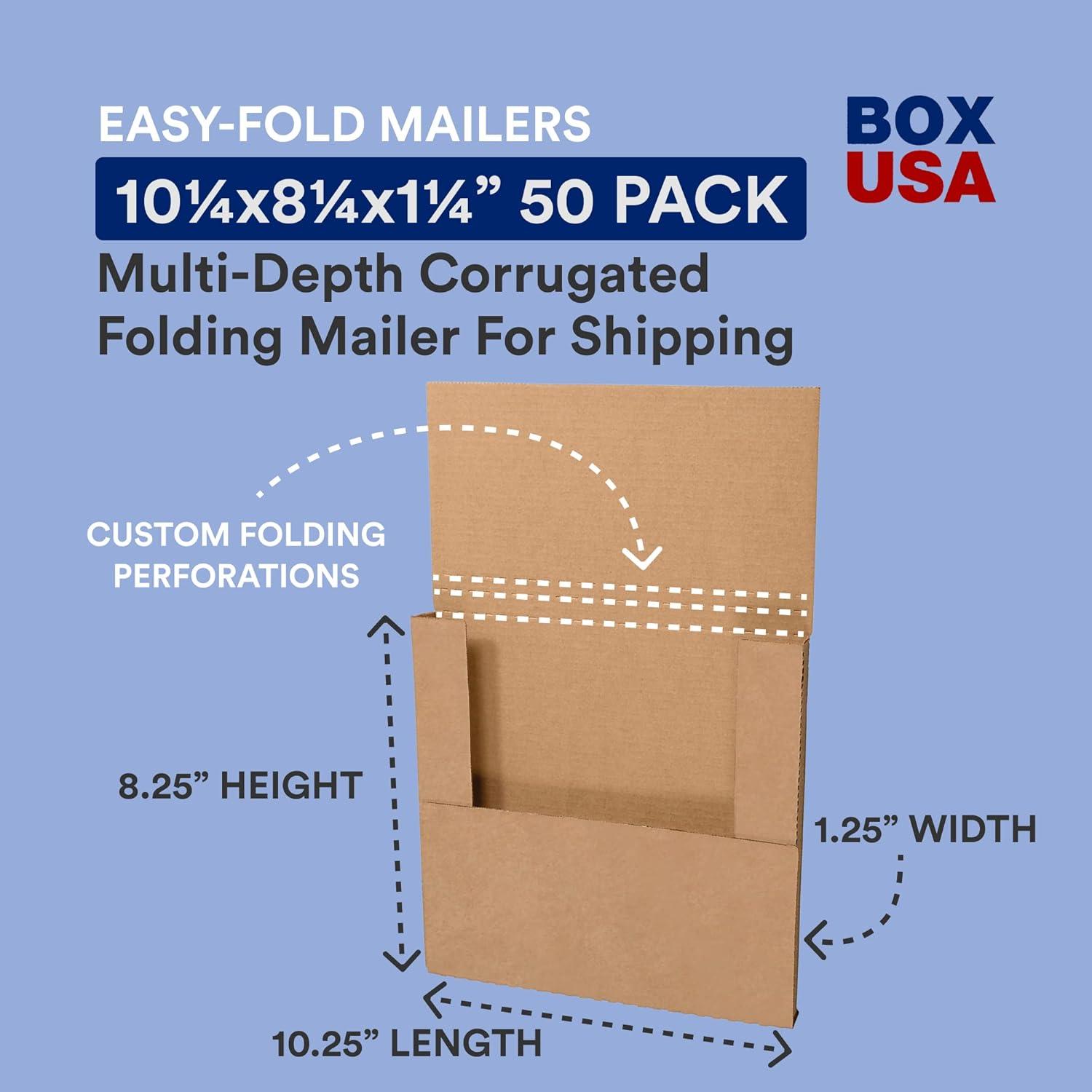 BOX USA Flat Mailer Shipping Boxes 18"L x 12"W x 2"H Large 50-Pack | Corrugated Cardboard Box for Small or Large Business Packaging, Mailing, and Storage(10x8x1 Boxes)
