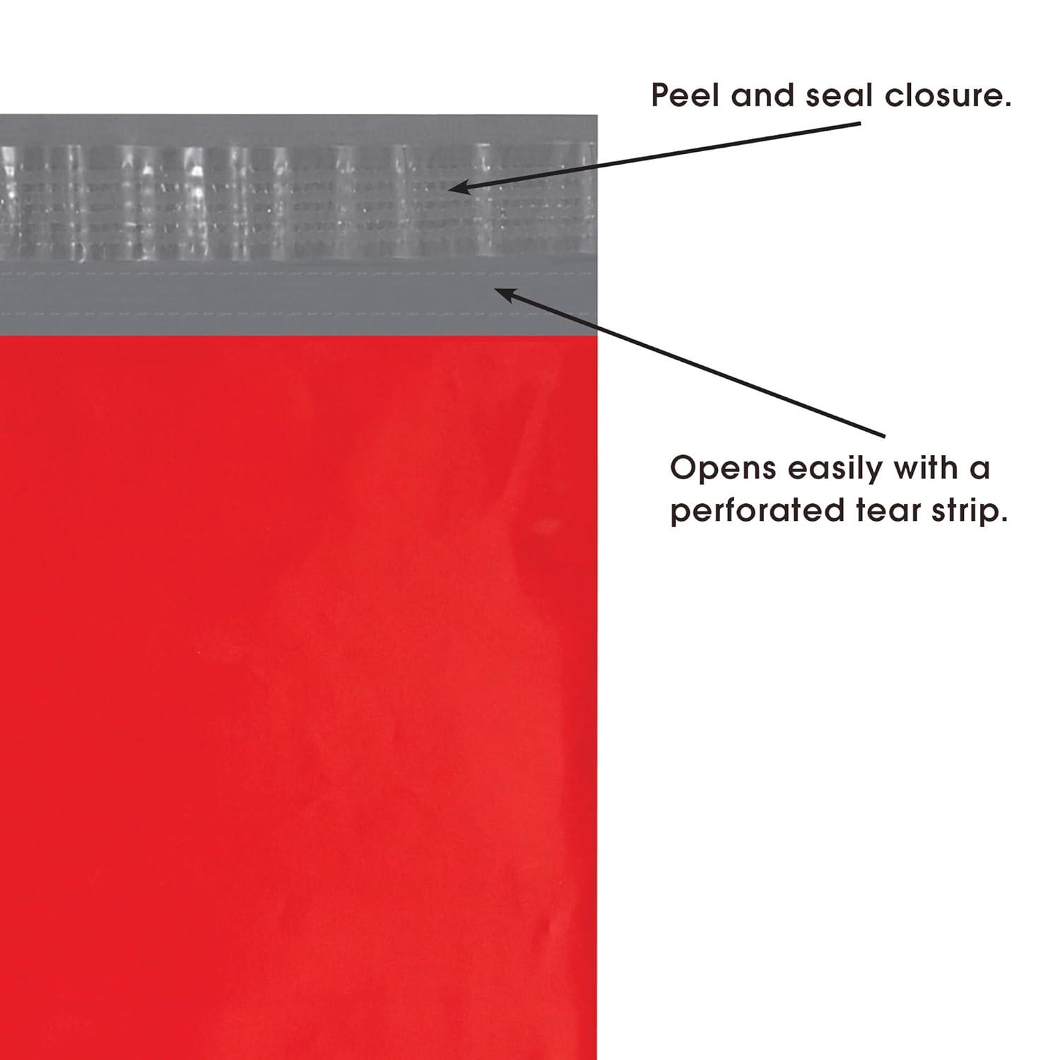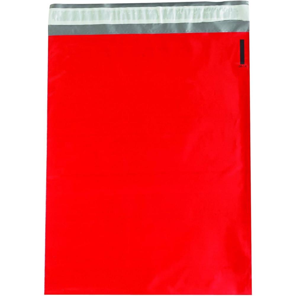 12″ x 15 1/2″ Red Poly Mailers. Strong polyethylene mailers protect products from moisture during shipping. Colored mailers attract attention. Mailers are puncture, water, tamper and tear resistant. High strength seams will keep contents intact even if over packed. The outer surface of the mailer is colored and the inner lining is silver. Labels stamps and ink adhere well. Opens easily with a perforated tear strip. Self-seal.