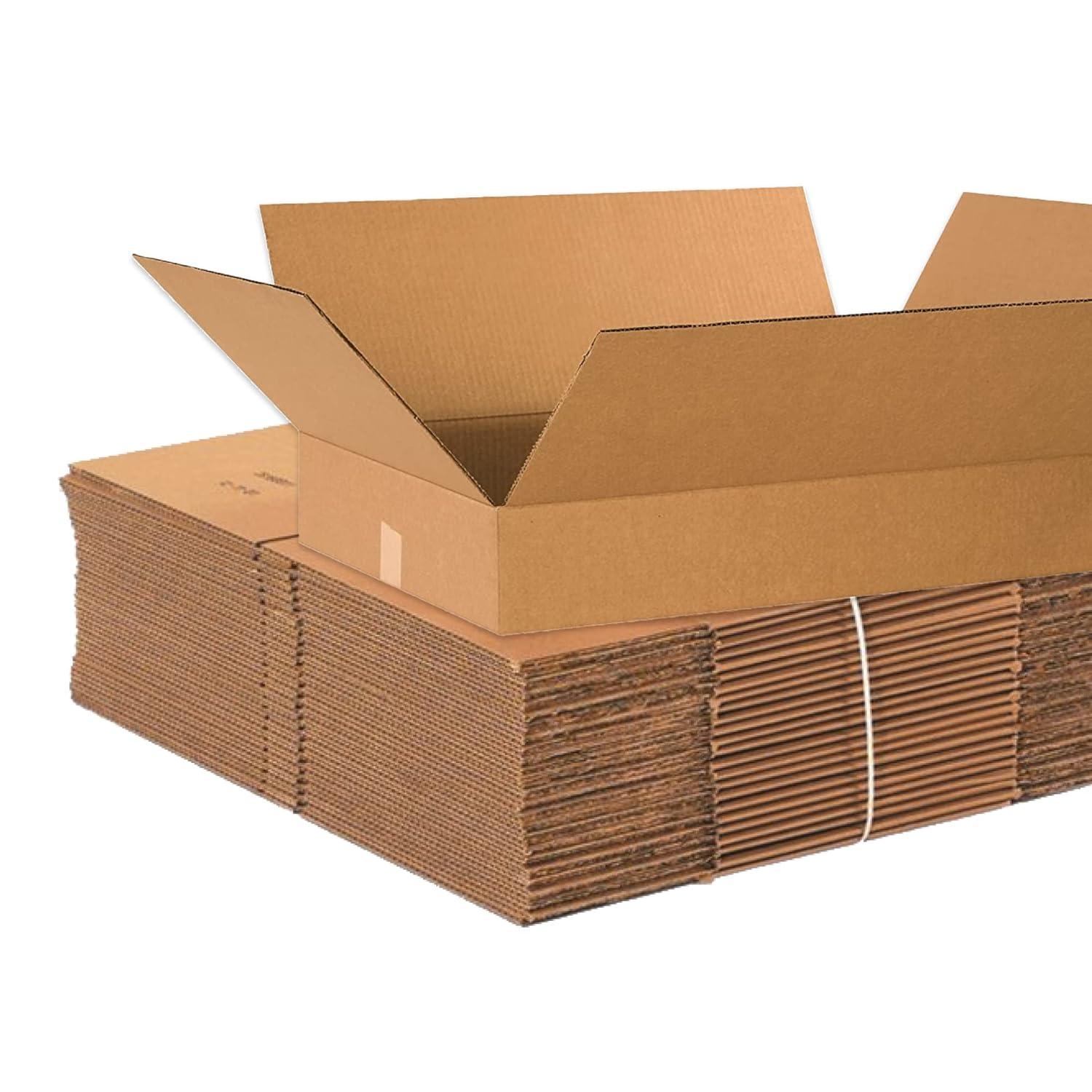 24 x 18 x 4″ Flat Corrugated Boxes. The smaller depths on these cartons provide an ideal fit for shallow products. Perfect for shipping apparel, books, picture frames, artwork, mirrors and clothing. Boxes are manufactured from 200#/ECT-32 kraft corrugated. Corrugated boxes are reusable and recyclable. Cartons are sold in bundle quantities and ship flat to save on storage space and shipping. Proudly made in the USA