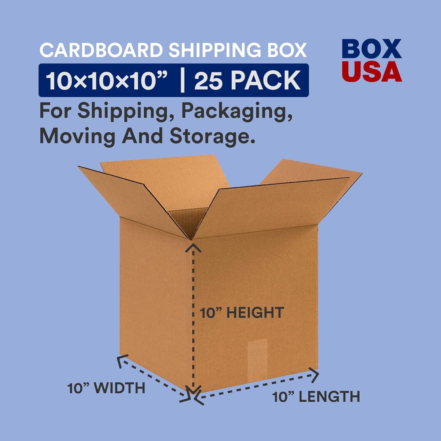10 x 10 x 10″ Corrugated Boxes. Cube boxes disburse product weight evenly for easier stacking. Use this popular size cube box to package cylindrical, round or odd shaped products. Boxes are manufactured from 200#/ECT-32 kraft corrugated. Corrugated boxes are reusable and recyclable. Cartons are sold in bundle quantities and ship flat to save on storage space and shipping. Proudly made in the USA