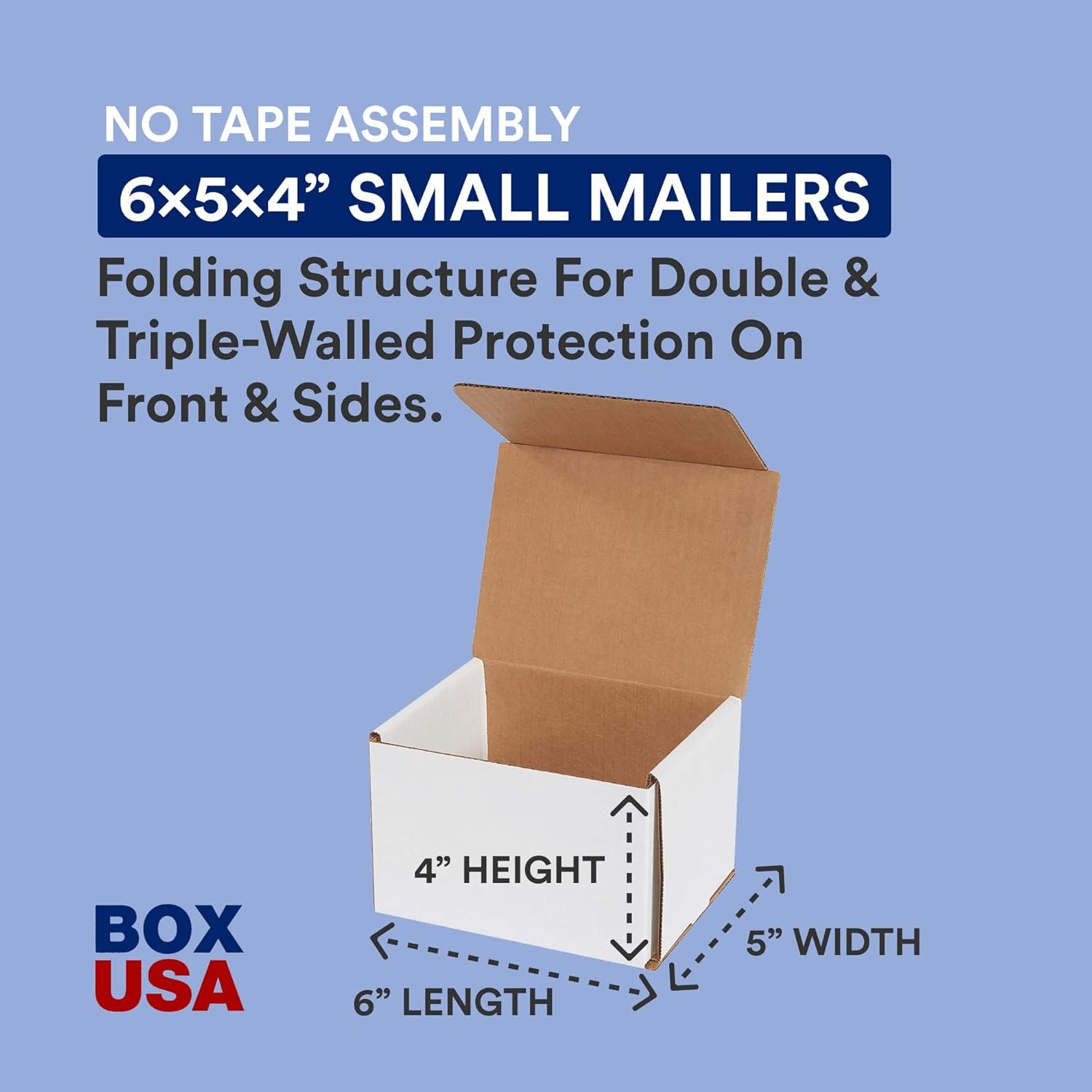 6 x 5 x 4″ White Corrugated Mailers. Corrugated Mailers are super strong yet light-weight to save on postage. Perfect for shipping small, light-weight fragile items. Corrugated Mailers are manufactured from 200#/ECT-32-B white corrugated. Crush resistant mailers fold to provide double walls of protection on front and sides. No tape, glue or staples needed. Proudly made in the USA!