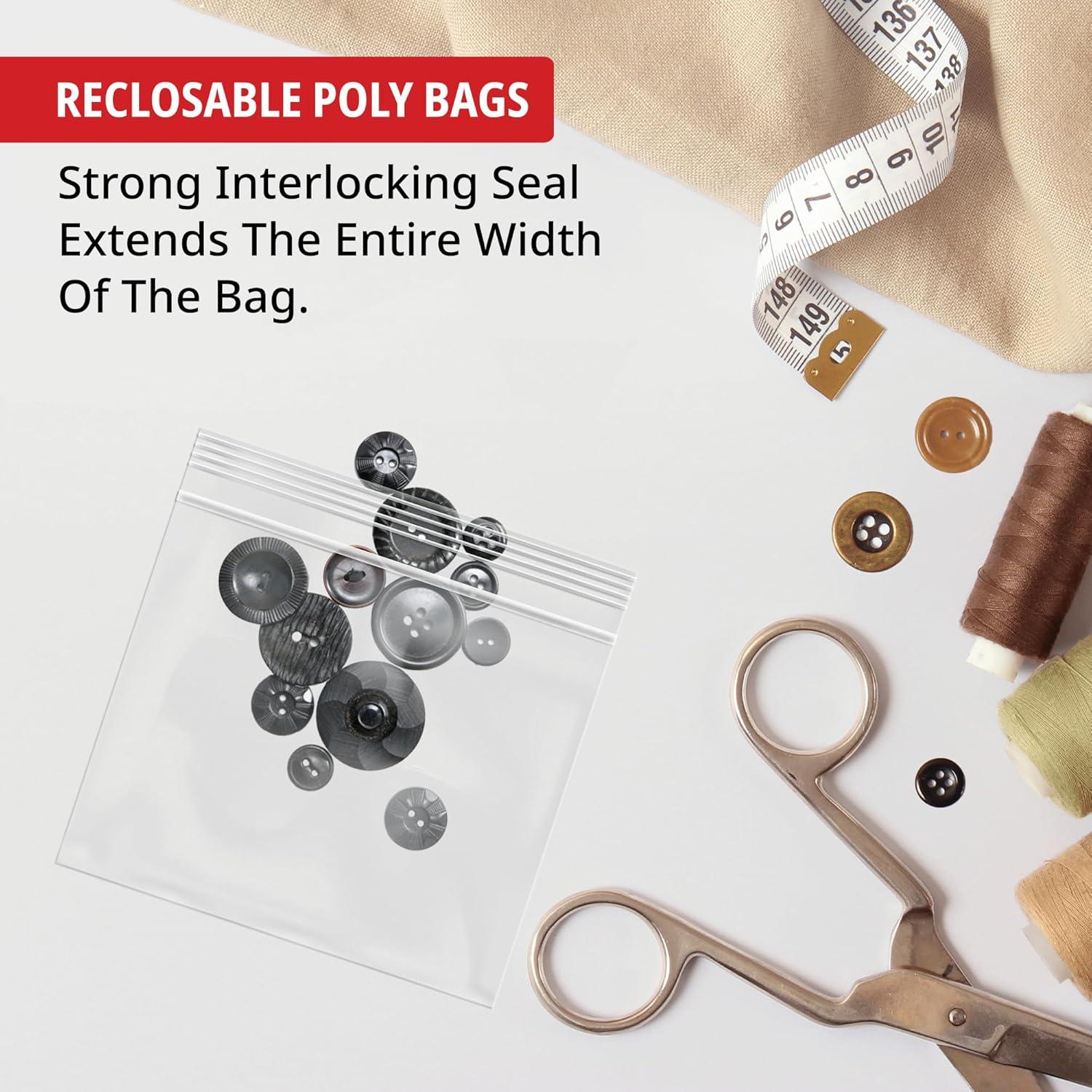 Reliable Seal: Our reclosable plastic poly bags offer a strong interlocking seal that extends the entire width of the bag. These clear poly bags speed up your packaging and mailing process and protect your merchandise from moisture