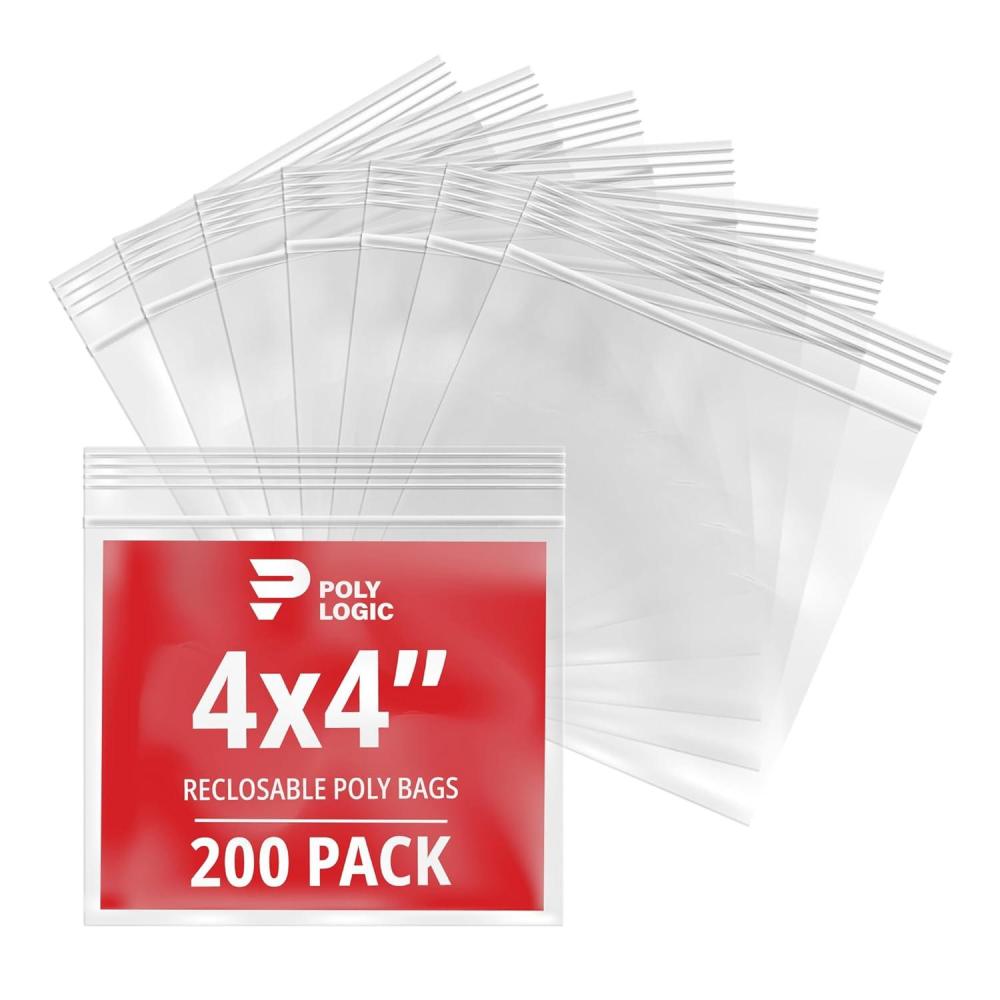 Clear 2" x 3" Reclosable Poly Mailer Bags 2 Mil Thick (200-Pack) | Plastic Resealable Polybags for Shipping, Mailing, Packaging & Storage | Small Reclosable Plastic Bags(4x4" (200-Pack))