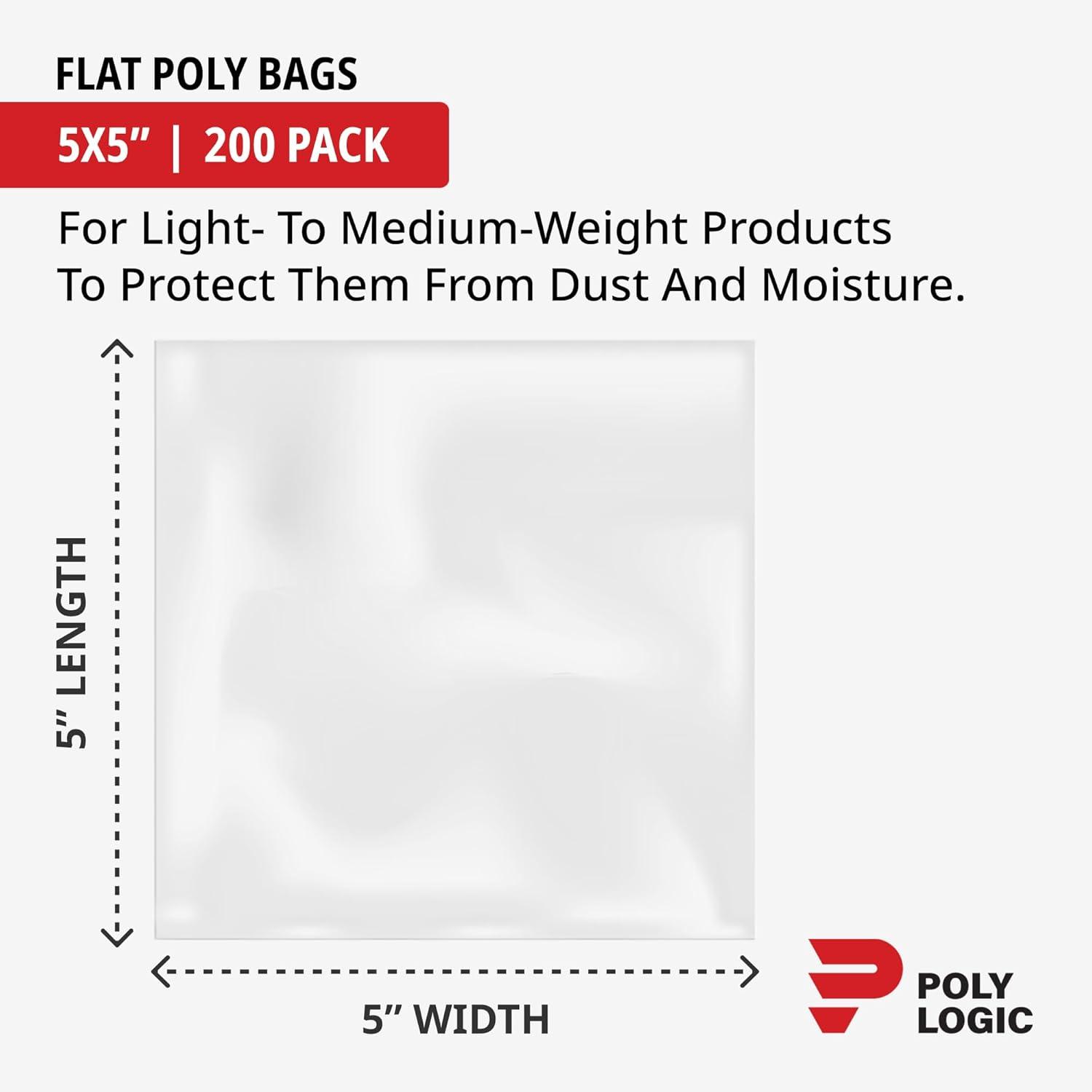 Clear 3" x 5" Flat Poly Mailer Bags 2 Mil Thick (200-Pack) | Plastic Flat Polybags for Shipping, Mailing, Packaging & Storage | Small Poly Bags Heavy-Duty(5x5" (200-Pack))